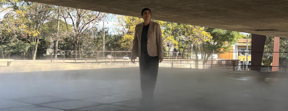 Laura transforma o espaço em organismo sensível: a matéria vira pele, respiração, correnteza.Entre o visível e o invisível, o tempo se mostra não como linha reta, mas como fluxo que dissolve e recria.